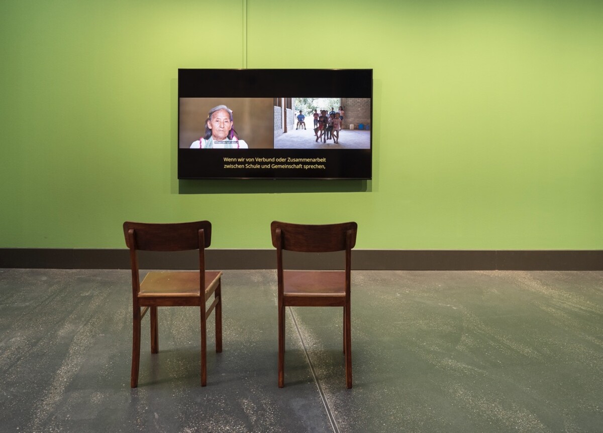 Die Auswahl der Präsentation wurde unter Zustimmung verschiedener Communities gemeinsam mit Waman Wasi in Lamas, Peru, getroffen. Die Kurator:innen des Peru-Pavillons, Alexia Léon und Lucho Marcial, teilten großzügig ihr Bildarchiv und die Videodokumentation Shifting, Slash and Burn: Voices (2023).