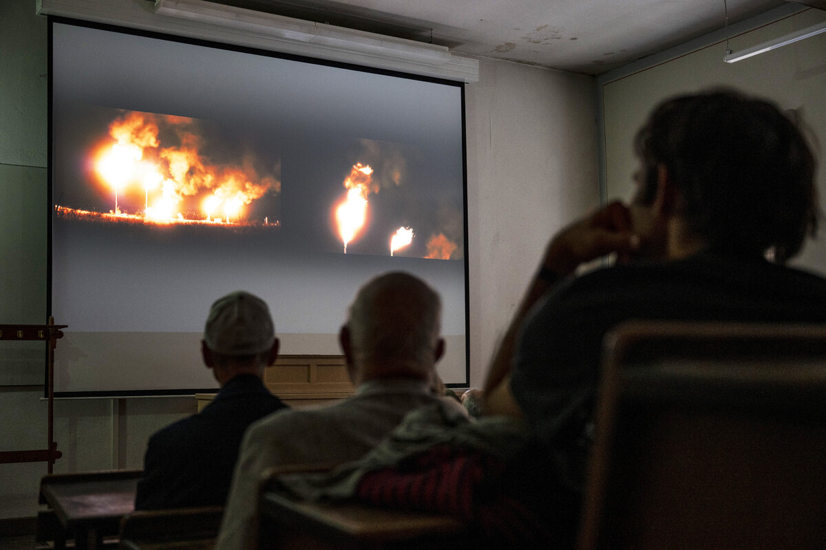 Angela Andersons ursprünglich als Dreikanalinstallation konzipierter Film problematisiert einerseits das hochtechnisierte Fracking-Geschäft am Beispiel der Fort Berthold Indian Reservation in North Dakota, auf deren Gebiet die extrem umweltschädliche Förderung von Schieferöl boomt. Andererseits gibt er Stimmen aus dem Dorf Jinwar wieder, einem kollektiven ökologischen Landbauprojekt freier Frauen in der autonomen Region Rojava in Nordsyrien. Eingerahmt wird die Gegenüberstellung der beiden voneinander entfernten Orte durch Aussagen der politischen Philosophin und Aktivistin Silvia Federici. Sie spricht darüber, dass nach wie vor das Prinzip der Zerstörung als produktiv und das der Bewahrung, Sorge und Verbundenheit als unproduktiv gewertet wird. For the World to Live, Patriarchy Must Die ist das erste Kapitel des audiovisuellen Forschungsprojekts Three (or more) Ecologies: A Feminist Articulation of Eco-Intersectionality. Anderson unterstreicht darin die notwendige Neudefinition von Werten angesichts von Wirtschaftsmodellen, die die gegenwärtige Klimakrise und die anhaltende Zerstörung von Ökosystemen vorantreiben, wobei das Wissen, das diese Ökosysteme kultivieren und nähren, eklatant missachtet wird. Die ungehemmte Akkumulation des Kapitalismus beruht auf Wettbewerb, sozialer Ungleichheit und Ausbeutung und bildet das Fundament der patriarchalen Gesellschaft. So kommt die Künstlerin zu einer eindeutigen Schlussfolgerung: Damit die Welt leben kann, muss das Patriarchat sterben.