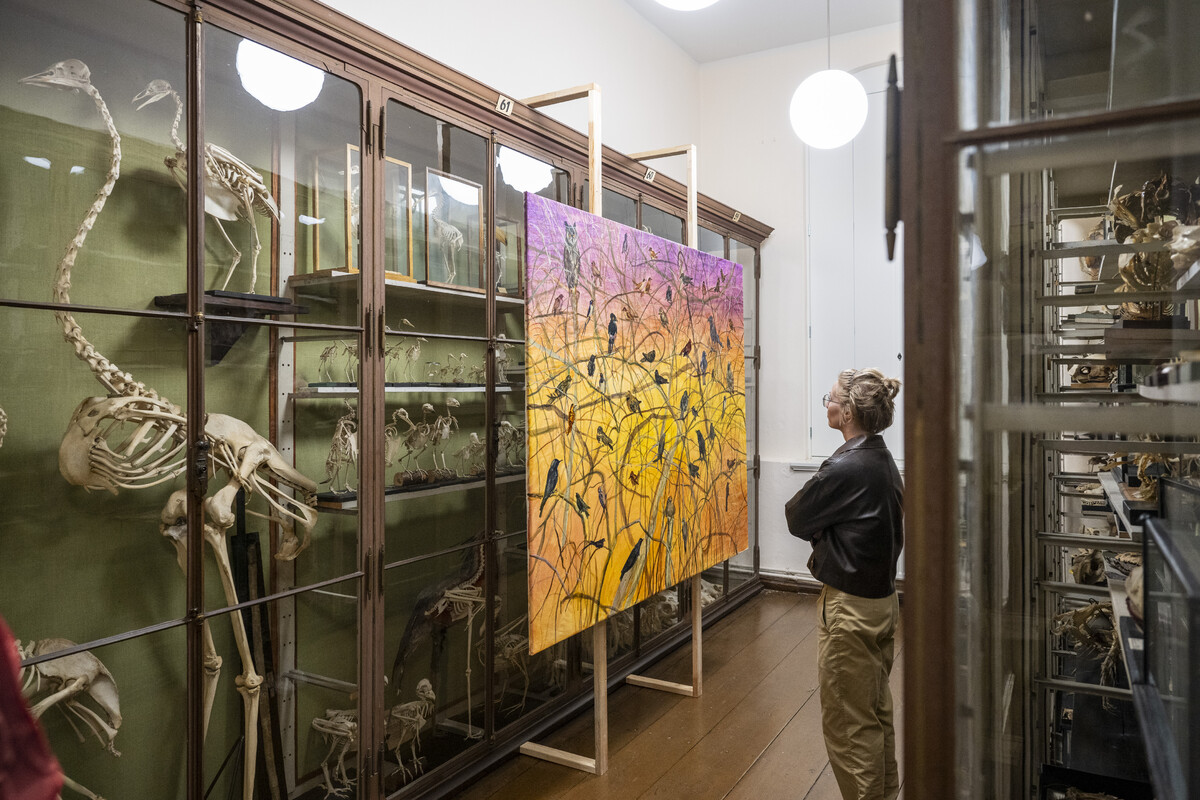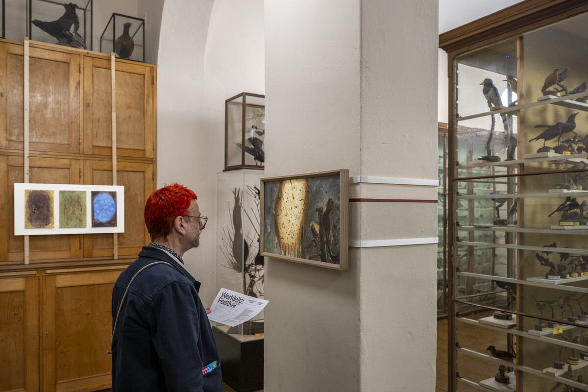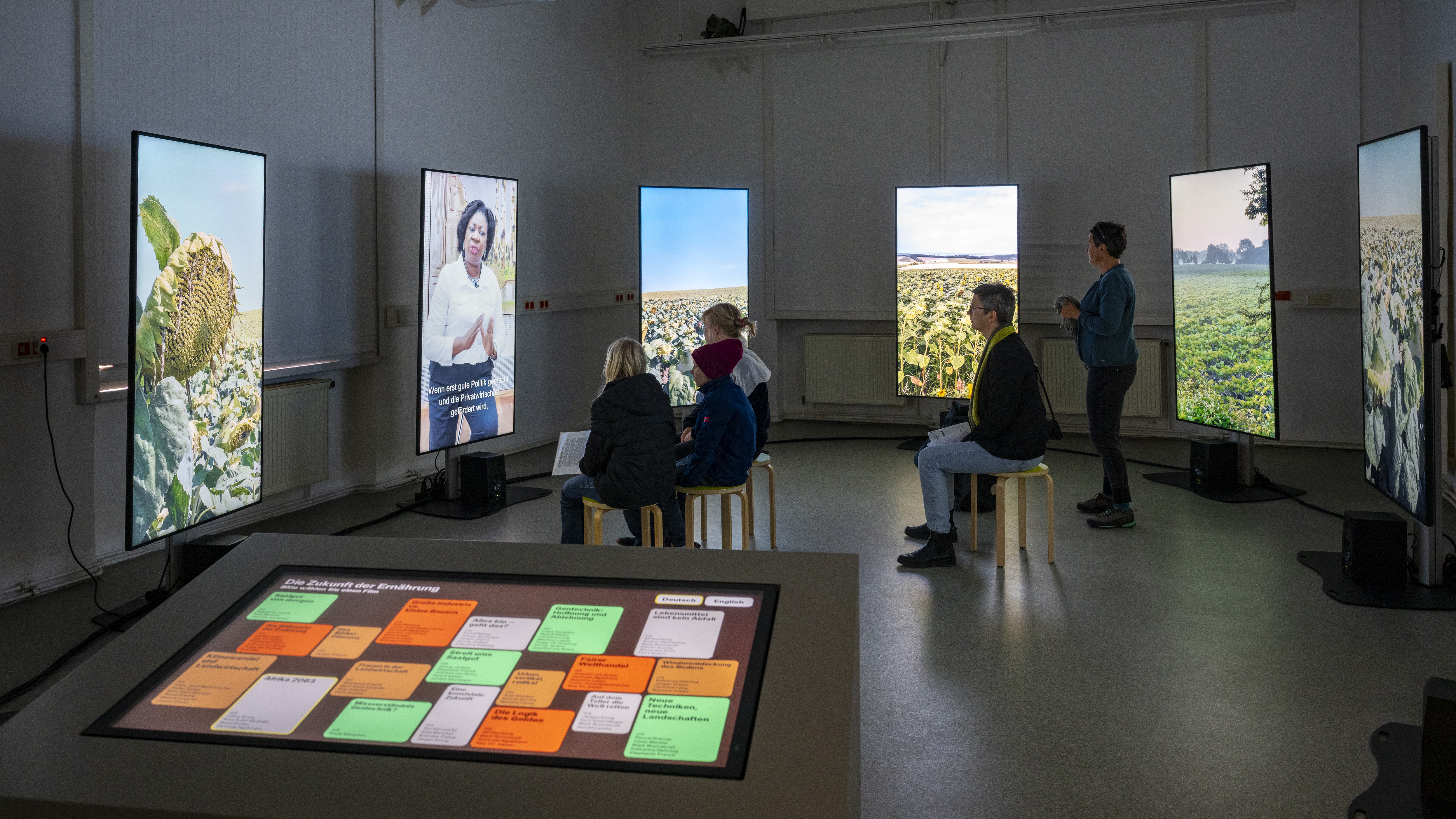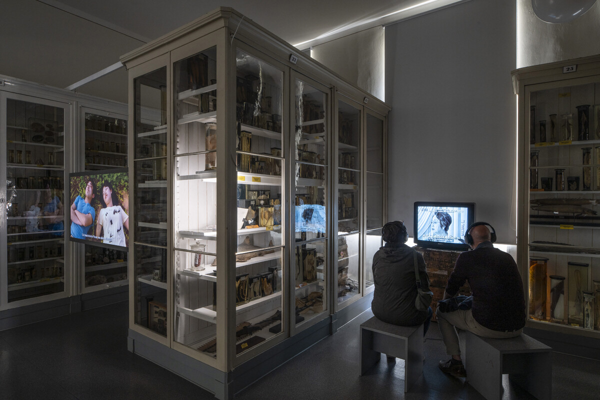 Die Schrankvitrinen der Zoologischen Sammlung beherbergen unzählige Objekte, unter ihnen auch eine Vielzahl landwirtschaftlicher Modelle und Präparate von Nutztieren der Haustierkundlichen Sammlung. Sie bilden den inhaltlichen Kontext für künstlerische Interventionen, die unsere aktuelle Vorstellung von Natur untersuchen und bäuerliche Praxen dokumentieren – zwischen Stadt und Land, kooperativer Bewirtschaftung und politischem Widerstand. Präsentiert werden die eigens für Planetarische Bauern produzierten Arbeiten der Malerin Kateryna Aliinyk und des Fotografen Jochen Lempert, zwei filmische Installationen von Nina Fischer & Maroan el Sani sowie von Salka Tiziana und Julia Ábalos Reznak und der dokumentarische Kurzfilm Agris von Lisa Liepelt. In der raumgreifenden interaktiven Medieninstallation von Clemens Stachel und Wolfgang Konrad debattieren Expertinnen und Experten aus verschiedenen Teilen der Erde über die Zukunft der Welternährung. Neben den zeitgenössischen Werken legen zwei Filme von Siegfried Bergmann eine historische Spur zu den Bemühungen in der späten DDR wie im frühen wiedervereinigten Deutschland, dem Umweltschutz gegen die Interessen von Agrarindustrie und Bergbau Gehör zu verschaffen.